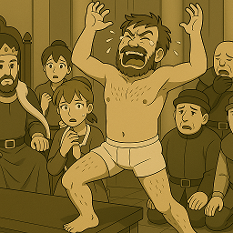 その中央で、財務長官が下着姿のまま、大きく手を振り上げて叫んでいました。