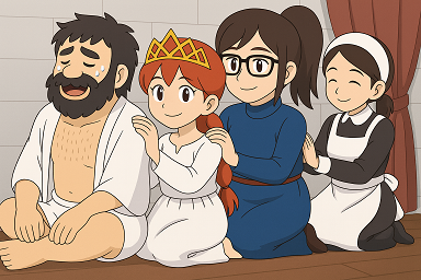 ひめさまはうなずいて、手にしていたお札を近くにいたメイドに渡しました。そして、静かに言いました。