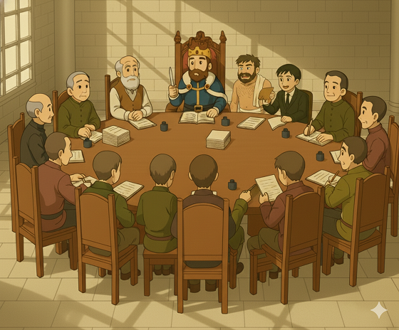 王宮の会議室では、国の代表者たちが、机を囲んで、緊張した空気の中で座っていました。
