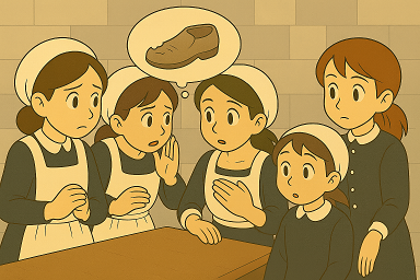 その頃、控室に戻ったメイドたちがひそひそ声で盛り上がっていました。