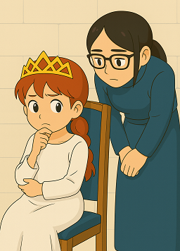 女官長がそっと姿勢を正すよう促すと、ひめさまは小さく頷き、膝の上で手を重ねました。