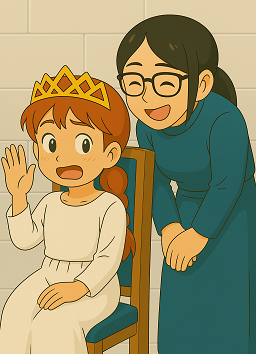 しばし考え込んだひめさまは、やがておそるおそる手を上げます。