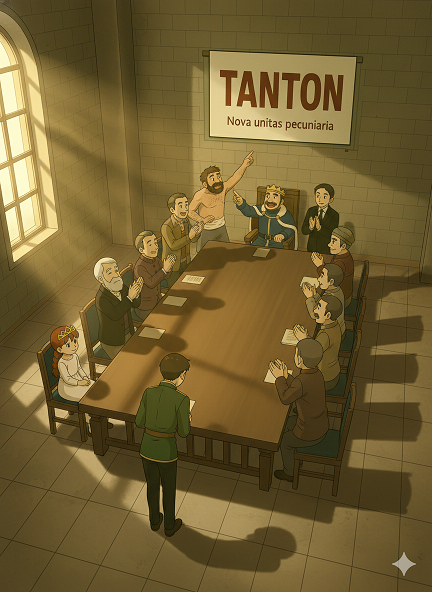 「よし、それでいこう。新しい我らの通貨は、……名を『タントン』とする」