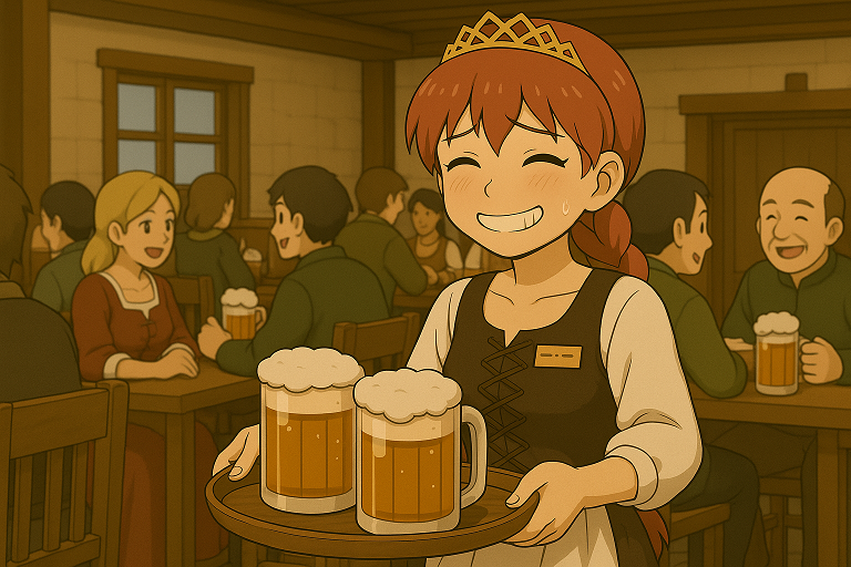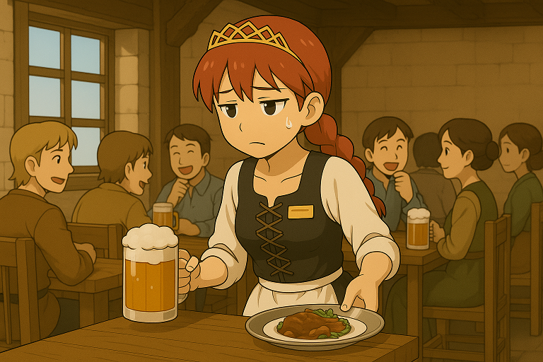 ひめさまは、居酒屋で注文を受けて駆け回っておりました。