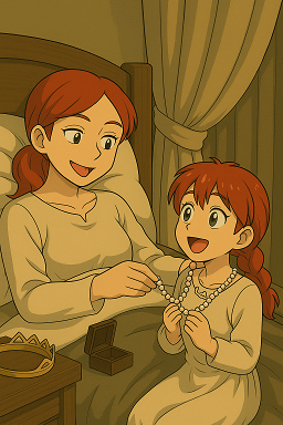 王妃さまはひめさまの首にそっと真珠をかけます。